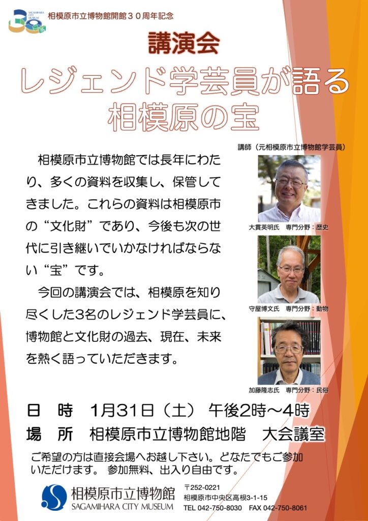 相模原を知り尽くした3名の「レジェンド学芸員」に、博物館と文化財について熱く語りあっていただきます。