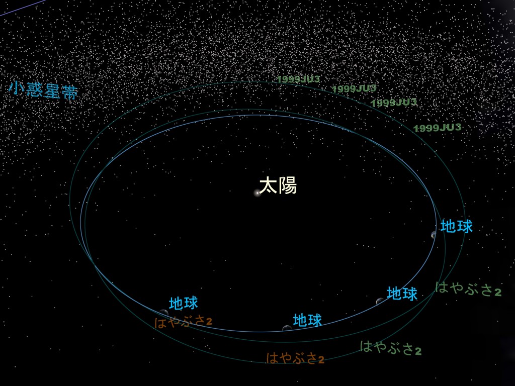 2014年(平成26年)12月3日(水)13時22分4秒に、種子島宇宙センターから打ち上げられた小惑星探査機「はやぶさ2」は順調に飛行を続けています。太陽を約366日でまわる、地球と似た軌道に乗っており、2015年12月には地球に接近します。この接近により、地球の重力を借りた加速を行い、小惑星1999 JU3に向かいます。