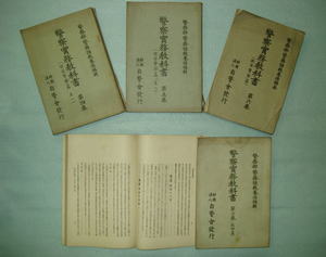 1つ目は、『警察実務教科書(警視庁警務部警務課教養係編)』。昭和8(1933)年9月から13(1938)年3月までに発行された5冊がありました。もちろん非売品です。これらは、寄贈者の父君(大正9(1920)年生・津久井出身)が<少年警察官>として警視庁Y警察署に勤務していた時に使われたものでした。<少年警察官>とはあまり耳になじみのない言葉ですが、もちろんこれは30年以上も前に流行したギャグ漫画の主人公が自称したものとは違い、戦前にれっきとして存在した未成年警察職員のことを指します。狭義には司法警察権をもった<巡査>もいたようですが、多くは内部庶務に就いた15歳以上20歳未満の少年たちの呼び名だったのです。実際、Y署に配属された父君の名を昭和15(1940)年警視庁職員録に<書記(少警)>として見出すことができ、別の書類から警視庁少年警察官第1期卒業生であったことも分かりました。