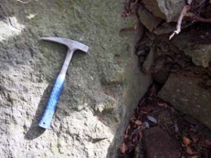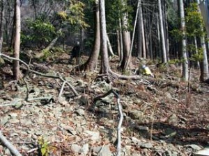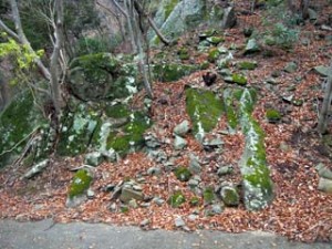 登山道途中の石切場跡