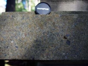 写真上部にはタマネギ状風化が見られますが下部には見られません。