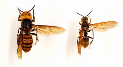 日本最大のハチで、樹洞や屋根裏などに大きなボール状の巣を作ります。攻撃性が強く、巣の近くを通っただけで刺される事があります。仲間には、キイロスズメバチ、コガタスズメバチなどがおり、いずれも攻撃性が強く、刺傷例がよく報道されるのはこの仲間です。