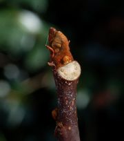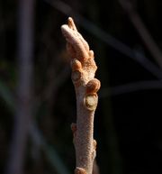 調査の後、保全地のまわりを歩いて自然観察を楽しみました。すっかり葉が落ちた夏緑樹は、一見すると命の営みを止めてしまったかのように感じられます。しかし、春への準備は着々と進んでいます。アカメガシワやニガキの冬芽はたくさんの毛に覆われていて、毛糸の帽子をかぶったようです。これなら河原の強い寒風にも耐えられそう。
