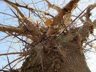 体全体に鋭いトゲをまとったサイカチは、葉が茂っている頃よりもトゲが目立ち、攻撃的です。ここまで徹底して武装するのには、遠い昔、食害する動物たちとよほど激しい戦いの歴史があったのでしょう。