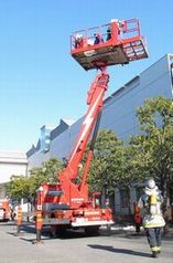 当日は相模原消防署緑が丘分署の協力を得て、3階に取り残された職員の救出訓練も、本番さながらに行われました。