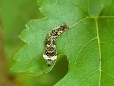写真6 クワコの5齢幼虫 つつくと眼状紋を見せる