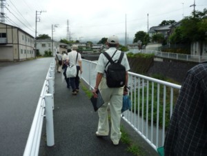 6~7月は探訪コースを検討するためボランティアグループ「相模原縄文研究会」のメンバーとともに緑区三ヶ木~寸沢嵐周辺、緑区谷ヶ原~向原周辺、南区新戸~下溝周辺、南区当麻~中央区田名塩田周辺の4ヶ所を歩きました。発掘調査された遺跡の多くは、住宅地や道路などに変貌し、遠い過去にさかのぼる人々の暮らしが、かつてその場所にあったことなど忘れてしまいそうです。ところが、住宅地の合間に残ったわずかな畑地や空地で縄文土器のかけらなどを見つけると、確かに人々の暮らしがそこにあったのだという実感が湧いてきます。そして、数千年の時間を飛び越えて、過去と現在が一体となったような感覚を味わうことができます。(考古担当:河本雅人)