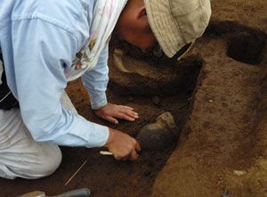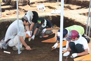 調査期間中の6日(金)には地元の小学生が参加して発掘体験が行なわれ、また、8日(日)の現地説明会には約50名の方々にご参加いただきました。