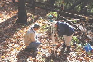 11月29日(月)から12月10日(金)まで津久井城跡の地形測量調査が実施されました。調査は、(財)神奈川県公園協会・市文化財保護課・博物館による合同体制で、調査のために集まったボランティアとともに行いました。