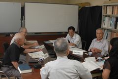 夏の暑さが残る9月15日(木)、「串川流域の撚糸業」をテーマとした座談会が津久井町史編さん会議室で開かれました。この座談会は、津久井町史の機関誌『ふるさと津久井第5号』(平成24年3月刊行予定)で「養蚕と織物」の特集を組むにあたって企画したものです。