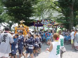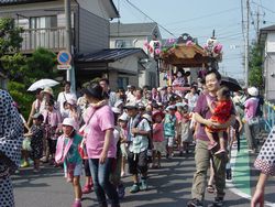 今年の祭りでは、23日の昼に、森下と当麻田から子ども神輿と屋台が相原八幡宮に集まり、式典の後、午後1時から子ども神輿と屋台がそれぞれの集落の氏子回りを行いました。夜は民謡流しやよさこい踊りなども含んだ歩行者天国パレードで、24日は朝から神社神輿の渡御があり、夜は奉納演芸大会となります。これからも市民の皆様からさまざまな情報を寄せていただき、市内各地の祭礼の状況について「民俗の窓」で取り上げられたらと思いますのでよろしくお願い申し上げます(民俗担当 加藤隆志)。