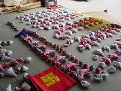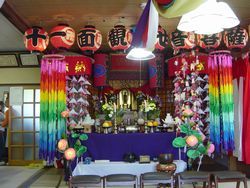 前回の「民俗の窓・相模原の民俗を訪ねて(№69)」で紹介した津久井観音霊場のご開帳は、女性たちによるオヒイチ作りを3月9日を含めて4日間行い、全体で600個ものオヒイチを完成させるなど準備が進められました。そして、連休中の5月3日の午前9時から全体のしつらえがなされました。