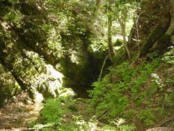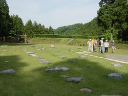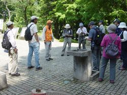 午後からは、小田原に本拠地を持ち、広く勢力を誇った小田原北条氏の重要な支城であった八王子城跡に向かいました。八王子城は天正18年(1590)に豊臣秀吉の関東制圧の一環として前田利家等によって攻め落とされ、それによって小田原開城の引き金となり、秀吉の天下統一がなされたことでも有名です。相模原市緑区の津久井城もこの時に、徳川家康軍によって攻められて落城したとされています。当日は、山の上にある本丸跡ではなく、八王子城跡のボランティアガイドの方のご案内の元、城主であった北条氏照(小田原北条氏四代当主・氏政の弟)の館などがあったと考えられている御主殿(ごしゅでん)跡を中心に見学しました。ガイドの方の熱心な説明は1時間30分にも及び、戦国時代を代表する城跡を堪能しました。ちなみに八王子城は国の史跡で、「日本百名城」の一つにも数えられています。