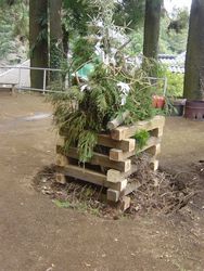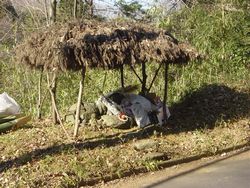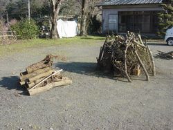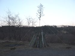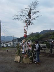 寸沢嵐道志北 道志では各地区で道祖神のイエを作るが、まだ昨年のままでここでは新しいものができていない。