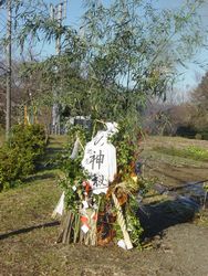 青野原前戸 道祖神碑の所に正月飾りが納められていた。どんど焼きは翌10日。