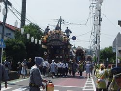 この日は気温35度を越えるかという激しい暑さでしたが無事に祭りが行われ、勇壮な山車の巡行と囃子を楽しむことができました。今後とも市内各地の祭りについて紹介していきたいと思います(民俗担当 加藤隆志)。