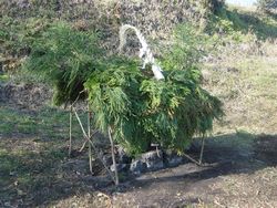 千木良岡本(旧相模湖町) 集落の畑の中に高いものを作っている。