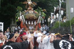 中野神社を出発した宮神輿。神輿は土曜日に担がれる