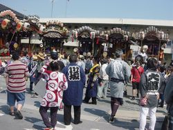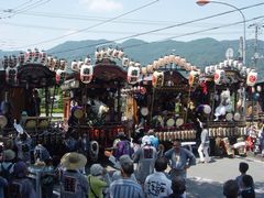 川坂本部での叩き合い。この後、夜に掛けて山車の巡行が行われる