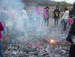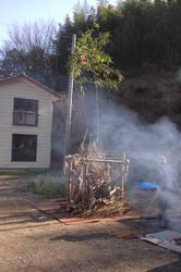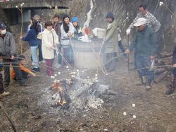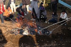 小倉(旧城山町) 小倉では三か所で実施。午後2時30分に点火し、訪れた際にはすでに団子焼きが終了に近くなっていた。