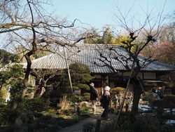 浄慶寺本堂。この時期にはあまりなかったが、アジサイなど折々の花が咲くことで有名。また、表情豊かな石造の羅漢像が出迎えてくれる。