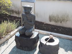 常安寺境内の河童像。この寺には河童にまつわる伝説が多いという。
