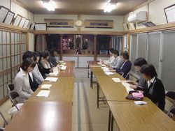 田名新宿集落は田名地区に11ある古くからの集落の一つで、他の相模川に近い田名の集落とは異なり、上溝からほど近い場所にあります。今回紹介するのは、田名新宿で行われているオコモリと呼ばれている行事で、毎年、4月18日と10月18日に自治会館と兼ねている観音堂において、自治会婦人部の行事として行われています。そのため参加者は準備に当たる方を含めて全員女性で、婦人部長と副部長(2名)の三役が進行等を担当し、そのほかの役員は、基本的には全く同じことを行う春と秋のオコモリの際に半数ずつ出て準備などに当たるとのことです。