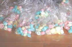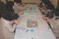 14日の涅槃会の前に各家に配る団子を袋に詰める