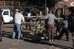 青山大堀 準備の様子。昔はもっと大きいものを作り、場所も動いているという。また、かつては子どもたちがすべて行い、大人は手を出さなかったという。