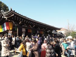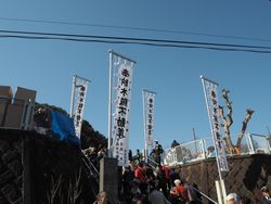 麻生不動の初不動を示す幟。階段下の規制でお参りまでもう少し。