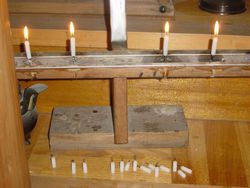 新しいろうそくの下に短くなったろうそくが見える。このろうそくを貰って安産を願う