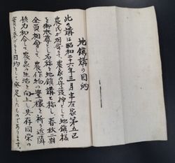 残りの二点が「地鎮講人名并記録帳」と記された帳面とノートで、帳面には昭和26年3月24日から昭和51年10月3日まで、ノートには昭和52年以降のことが記されています。前者の帳面の冒頭には、上記のような復活の経緯や全員が介して農作物の豊穣を祈り、近隣協力和合して農家の生活を向上を遂げるとする地鎮講の目的が記され、当初は13名で開始されたことがわかります。そして、この帳面やノートには、講の開催日や当番・会計はもちろんのこと、講の場で行った申し合わせや協議事項等も書かれており、地鎮講の推移や地区で話し合われたさまざまな事柄についても知ることができます。