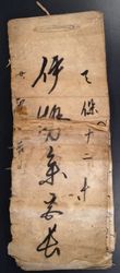 5点の帳面類のうち、一点は天保12年(1841)の「伊勢参宮帳」です。半在家には伊勢講の伝承があり、江戸時代には伊勢講が流行って資金を集め、一生に一回は伊勢参りをするのが目的であったものの、実際は皆で伊勢参りをすることはできなかったそうです。また二点は、明治19年(1886)と大正2年(1913)の二十三夜講に係わるもので、講員や当番、規約などの記載があり、後者には毎年4月13日と10月13日にお日待をすることなどが見えています。