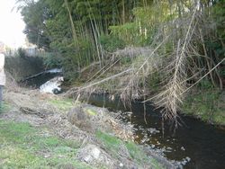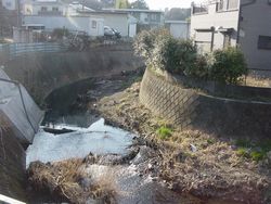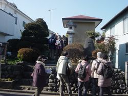 2月11日のフィールドワークでは、12時30分に古淵駅に集合し、鶴見川に掛かる町田市の図師大橋に向けて歩いていきました。今回のコースは、徳川家康の柩(ひつぎ)を静岡の久能山から日光まで運んだ際に通ったとされる道や、相模原市と町田市との境を流れる境川と鶴見川上流域を比較することができるもので、事前に民俗調査会でも下見を行って、見所やトイレの場所などを確認しつつコース設定に当たりました。当日は、申し込まれた一般参加者の人数はそれほど多くはありませんでしたが、何人かの民俗に親しむ会と民俗調査会の会員も随行し、比較的暖かい陽気のなかで充実したフィールドワークを行うことができました。