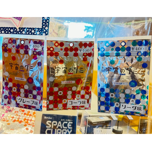ロケットに乗って宇宙から生還した乳酸菌の子孫たちがおいしいグミキャンディになったものです。